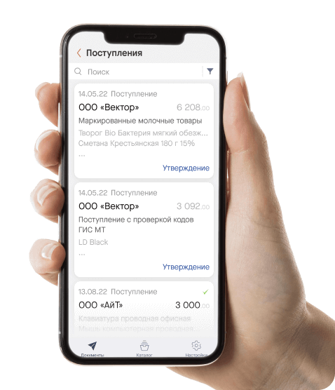 Загружайте с телефона или сканера, Saby все распознает и внесет в систему